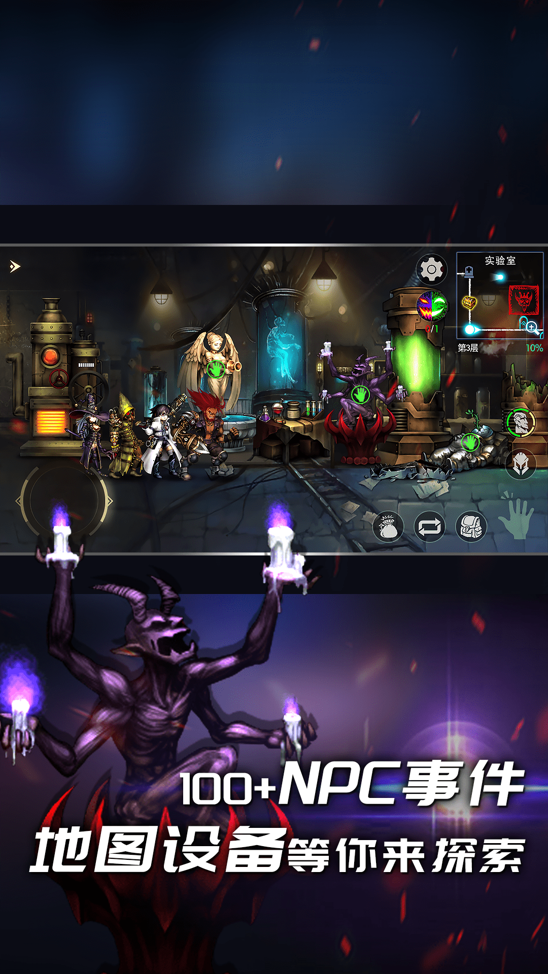 1、Roguelike加横版策略类游戏,你将遭遇丰富到爆的敌人挑战:7种地牢,40+怪物头目,100+怪物阵容。