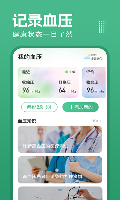 血压血糖测就是一款方便记录血压,并能提供丰富血压知识的APP,坚持使用,祝您拥有健康的好身体!