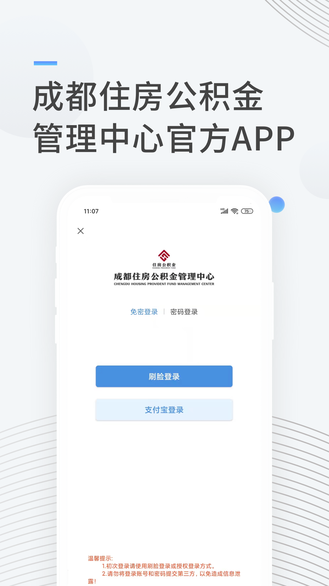 免注册,支付宝登录、刷脸登录、验证码登录,轻松查公积金账户明细。