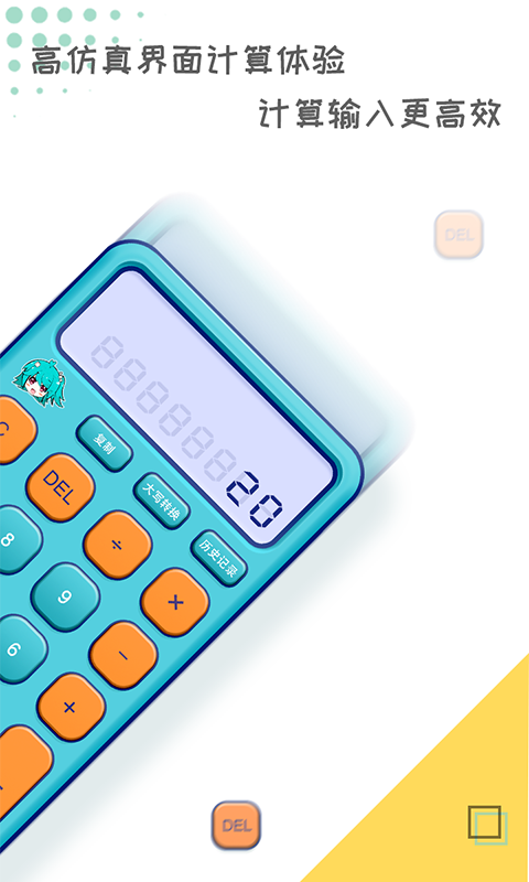 二次元计算器是一款体型轻小,功能强大的科学计算器。浓烈的二次元风格让二次元爱好者欲罢不能,精美的UI设计和甜美的日文报数是二次元计算器的杀手锏。产品特点:--二次元风格爆棚,计算器也能如此精美;--一键复制计算结果,支持角度弧度计算;--甜美日文报数功能,有效避免输入错误;--超长的历史数据记录,快捷查询完整记录;--大小写数字一键转换,方便财务报销填写;--清新简洁的界面设计,更高效的操作体验;--三角函数科学计算,支持角度、弧度计算。