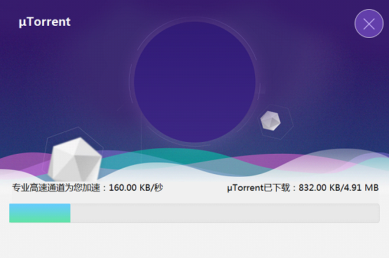 3. 正式下载窗口如下图二所示,上部分显示了下载软件名及提前结束下载任务的关闭图标。下部分是下载进度的显示。当目标软件下载完成后,则弹出软件安装窗口。