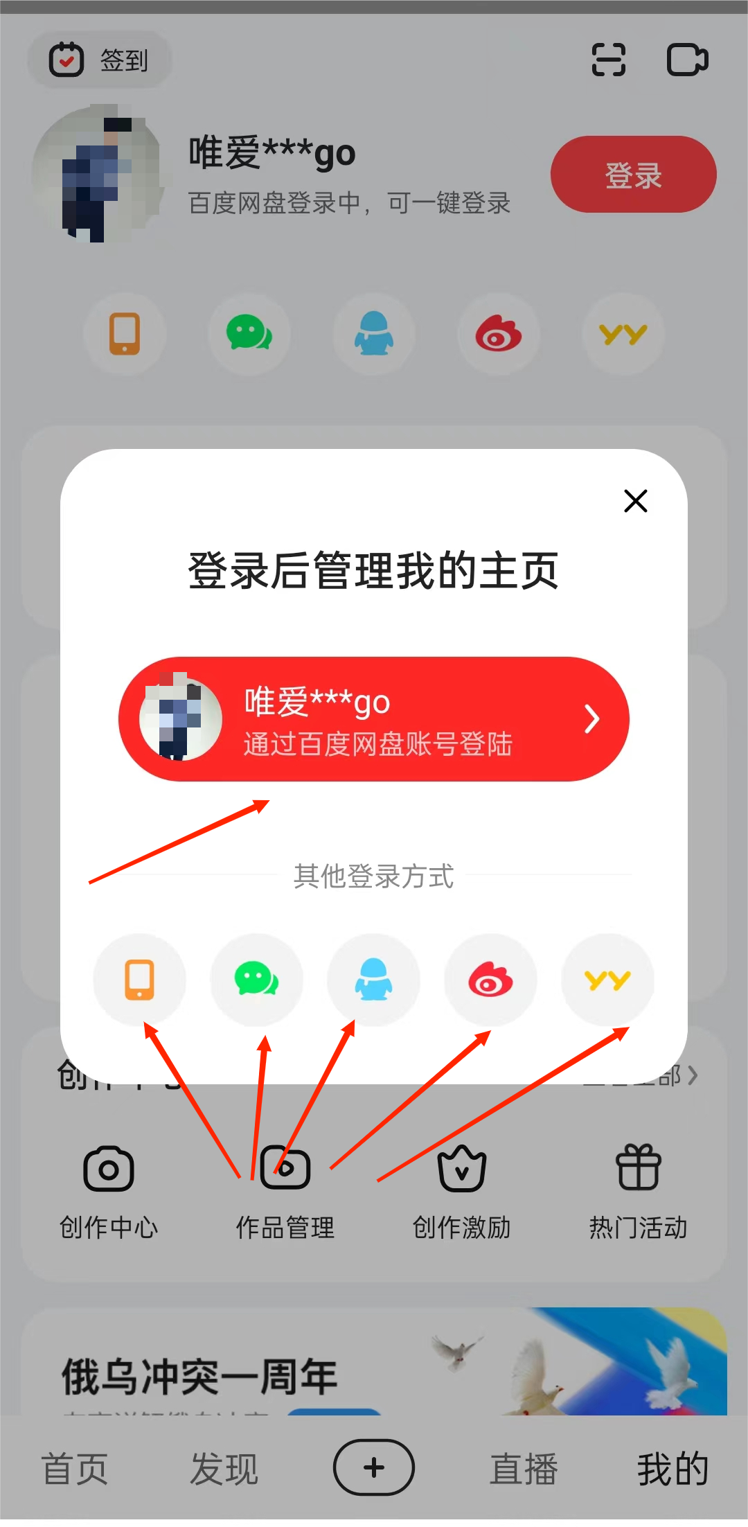 根据小编的亲自使用经验来看,好看视频目前的登录方式一共有6种,包括百度网盘账号登录、手机号登录、微信登录、QQ登录、微博登录以及YY账号登录。