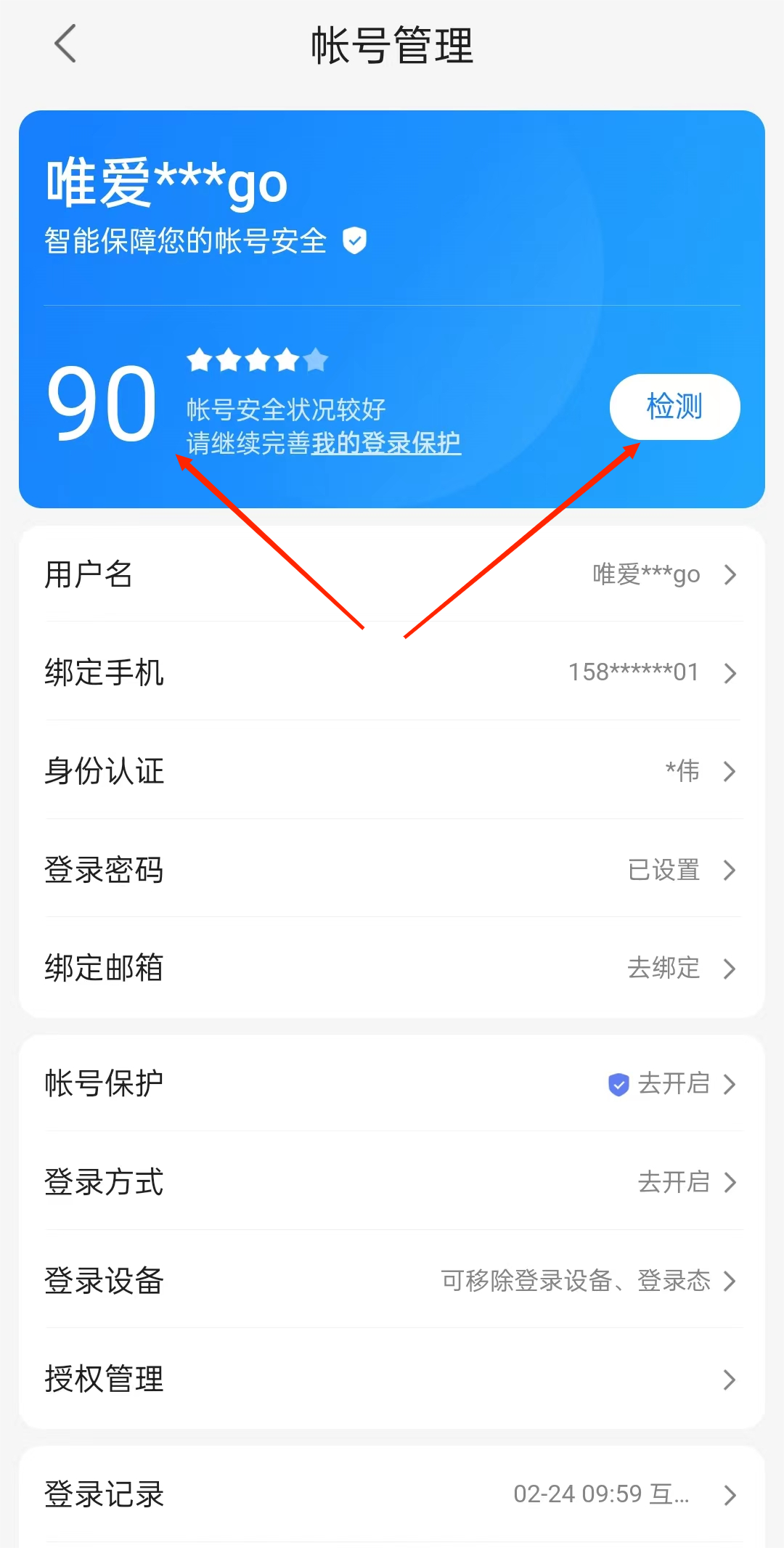 介绍完了好看视频的登录方式内容后,那么好看账号的安全状况去哪里进行检测呢,继续往下看吧。