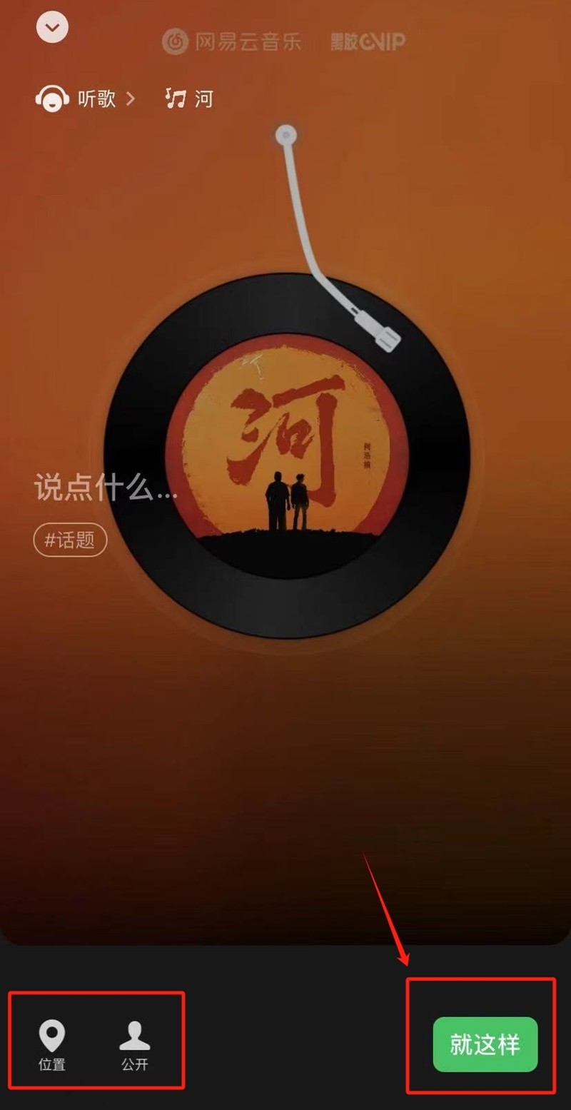 5、这时我们将会跳转至微信里的状态设置页面,你可以添加分享内容、设置定位和选择公开范围。设置完成后点击【就这样】即可完成设置。