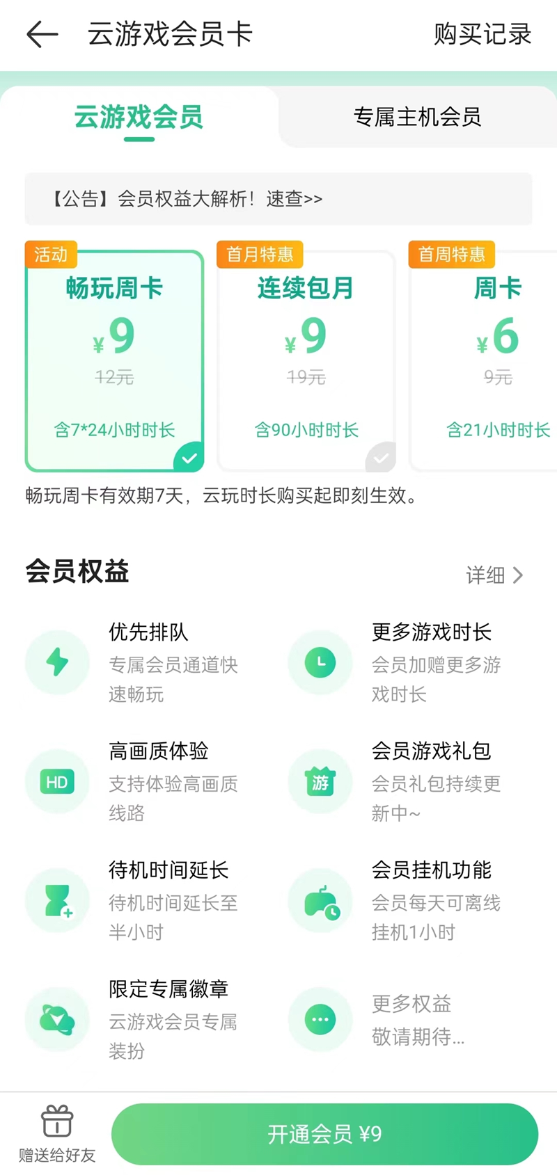 开通会员即可获得对应的赠送时长(单个会员周期结束时会清零重置,如:购买周卡会员所赠时长会在7天后清零重置;购买月卡会员,所赠时长会在30天后清零重置。)