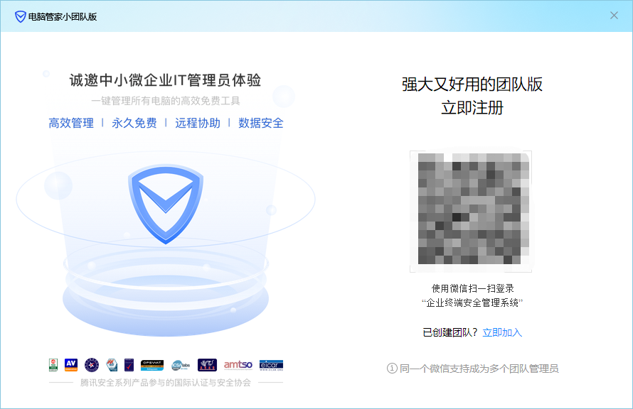 腾讯电脑管家的企业功能注册并不困难。我们只要在界面扫码,根据腾讯电脑管家所给的提示,一步一步操作,即可完成注册;如果是普通成员,那很有可能在我们来到企业时,与其相关的就已经安排好了,更不用自己操心。