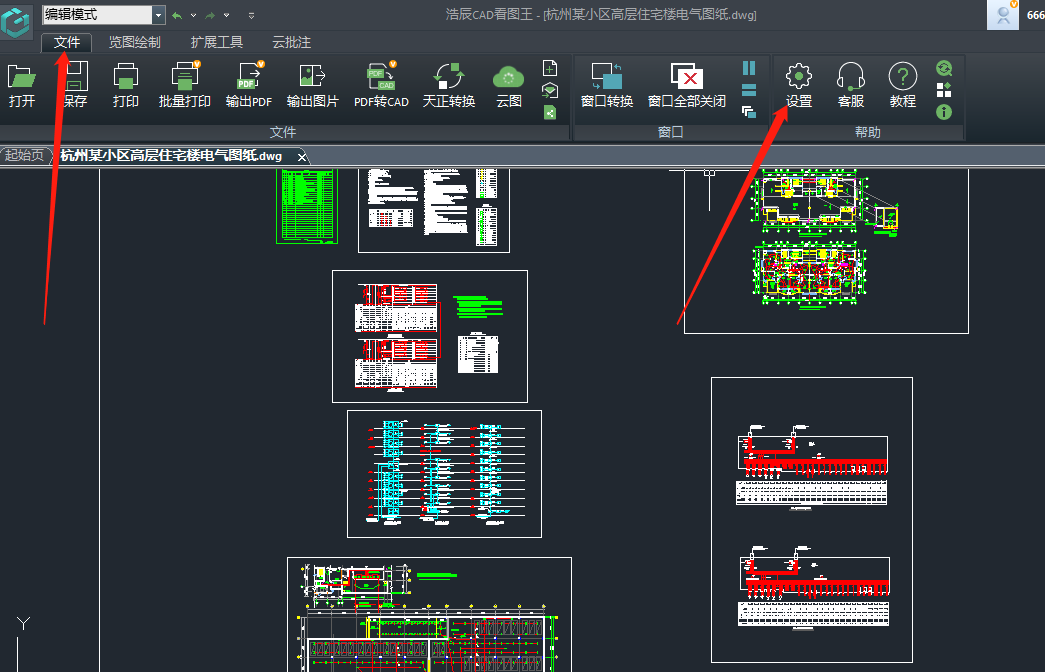 1. 打开浩辰CAD看图王电脑版后,点击上方菜单栏中的【文件】,点击【文件】下方右侧的【设置】;