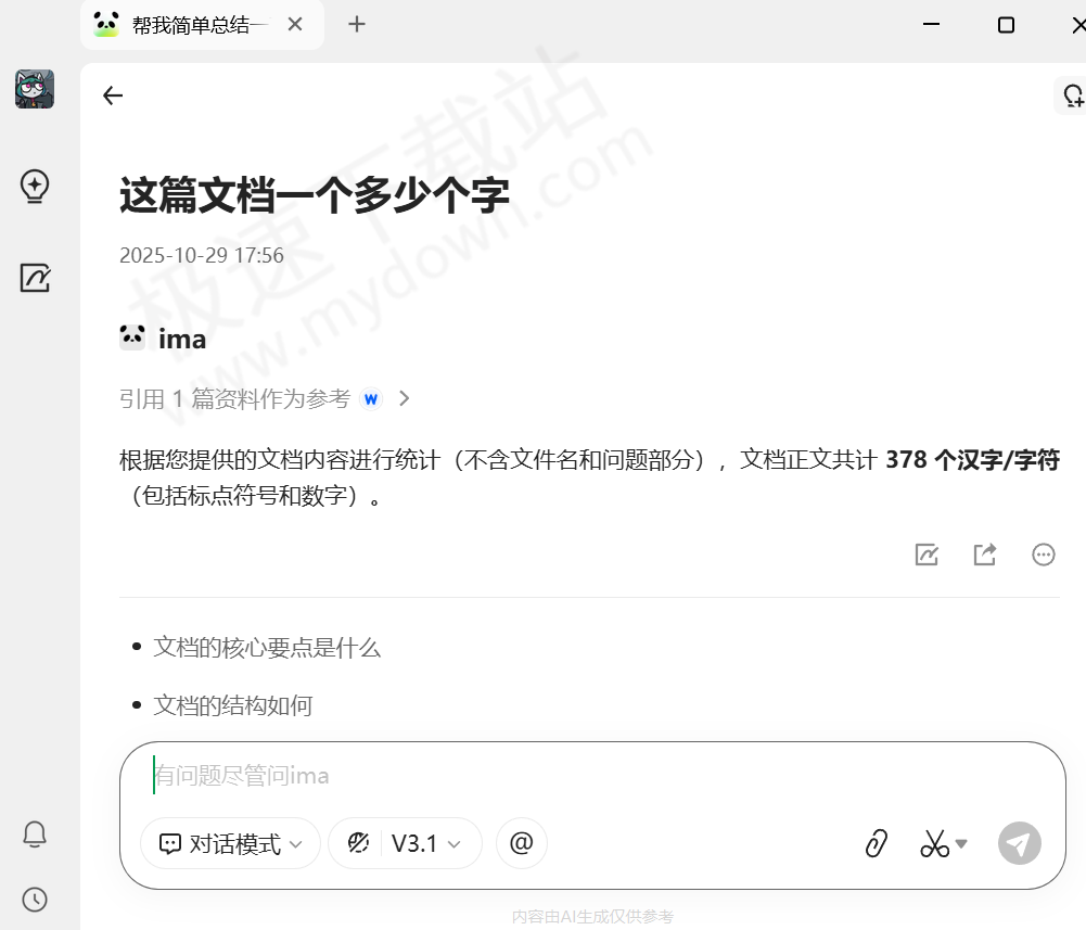 5.我们还可以继续提问,比如这篇文档一共多少个字。