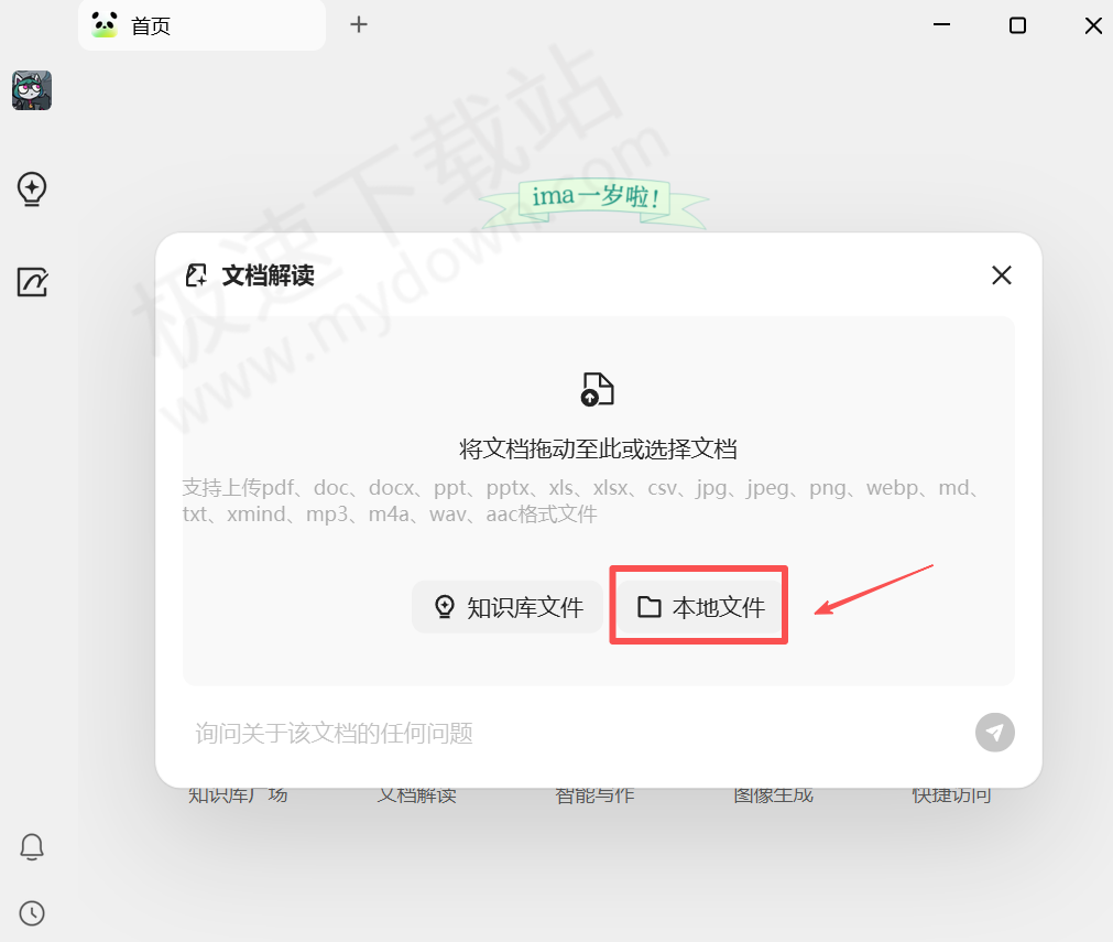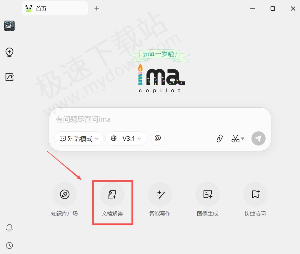 1.下载并打开最新的腾讯ima客户端,点击首页下方【文档解读】。