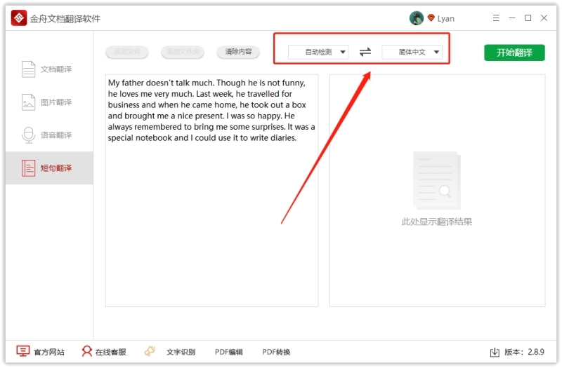 金舟文档翻译软件是一款不错的翻译工具,界面设计也非常简洁清晰。无论需要翻译的文件有多少页,都可以快速翻译出来。自从小编使用了这款翻译软件,再也不用担心工作进度了。下面给大家介绍金舟文档翻译软件如何翻译短句短语。