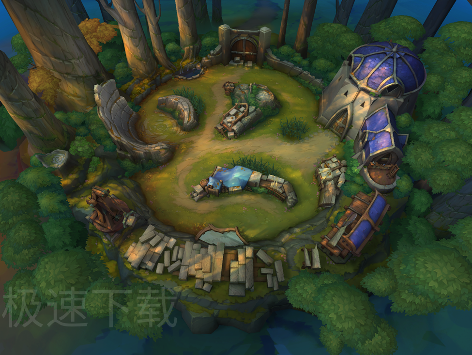 ●经典地图「远古树林」优化:作为目前最小的竞技场地图,本次更新调整了地图整体布局,在外围新增一组能量花卉,同时在地图中央加入全新资源「堡垒之花」,成功补刀后可获得大量生命值与护盾,人数处于劣势时效果还会进一步提升,为逆风方提供翻盘机会。此外还在地图边缘新增了草丛与地形,方便玩家拉扯运营,丰富了对局的战术选择。