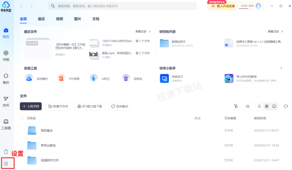 1.在夸克网盘首页点击左下角【齿轮】选项进入设置页面。