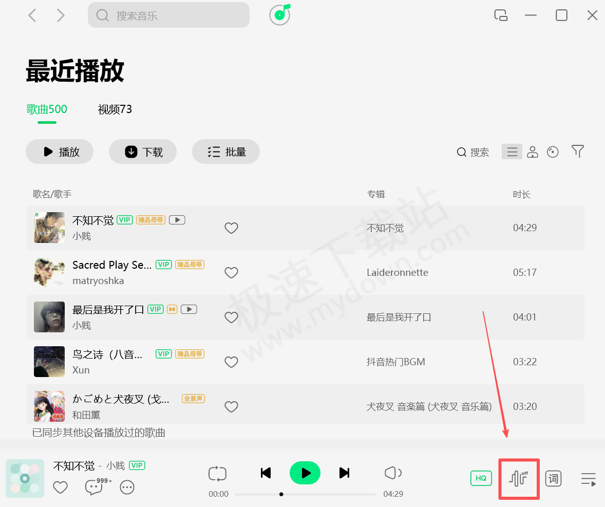 1.下载并打开QQ音乐,随机播放一首歌曲,然后点击右下角【音效】选项。