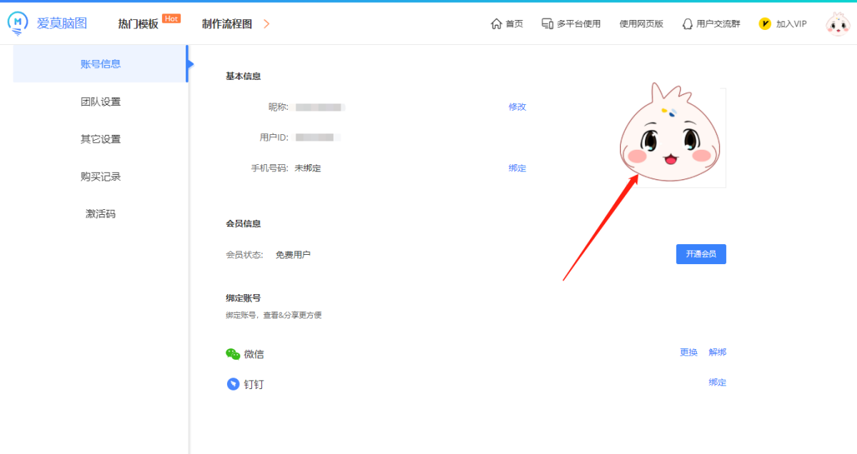 最后点击激活会员就可以啦,小伙伴们学会了吗?以上就是小编为大家带来的关于爱莫脑图如何更换头像,爱莫脑图怎么使用激活码的全部内容。