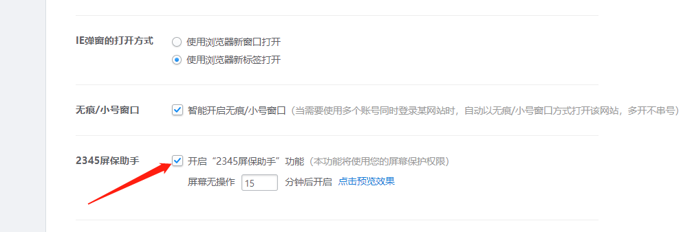 在右侧选择使用浏览器新标签打开就可以啦!2345加速浏览器如何关闭屏保助手