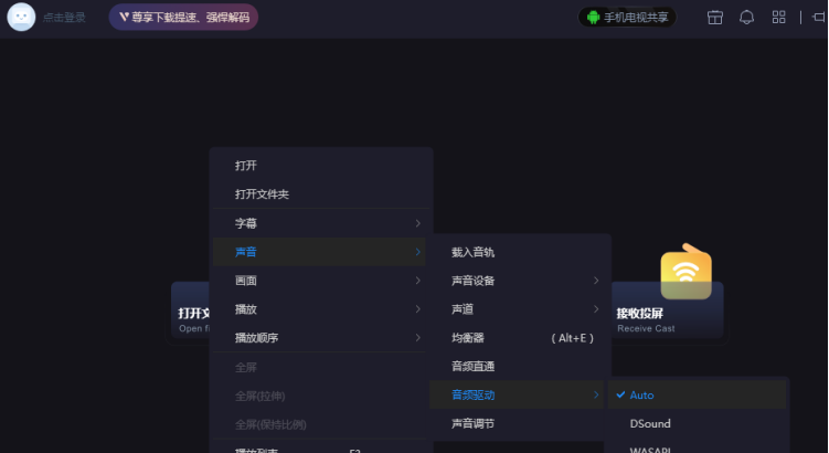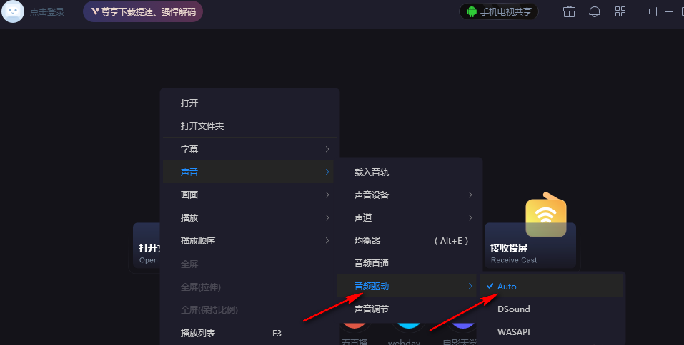 5、此时我们选择“Auto”选项,这样在播放文件时,播放器就会按照设置来选择输出方式了。