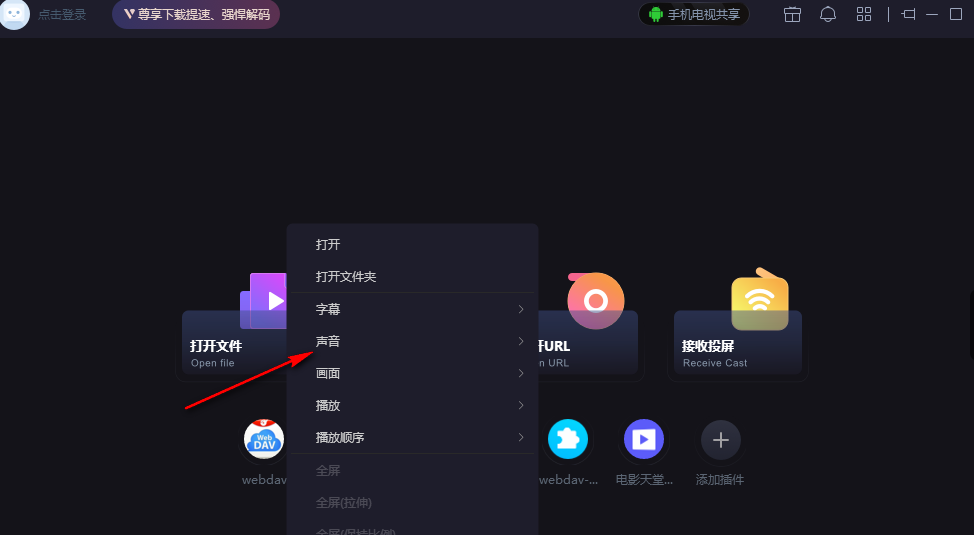 1、我们在电脑上进入到恒星播放器的主界面,选择菜单栏中的声音选项。