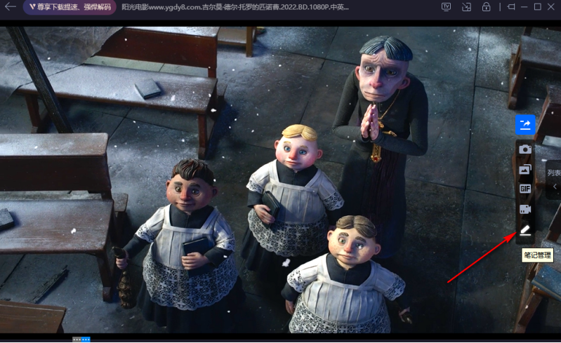 3、播放视频以后,在右侧会有一些工具栏,找到“笔记管理”这个工具。