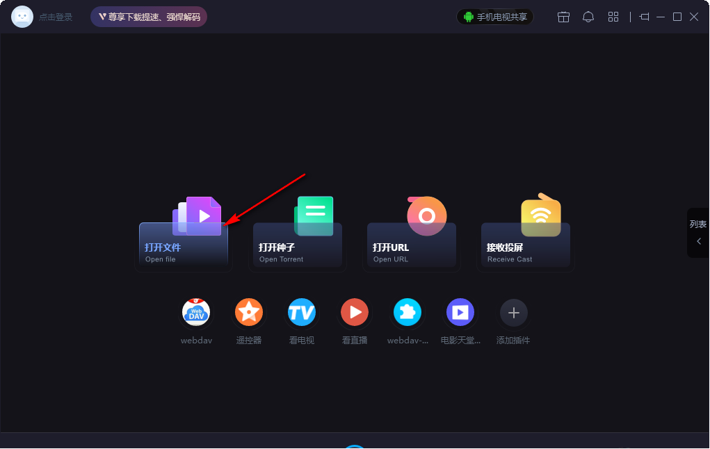 1、第一步,在恒星播放器的主界面,点击左侧的“打开文件”选项。
