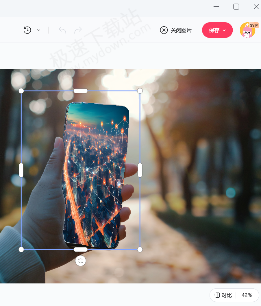 2.AI扩图。自动延伸图片背景内容,匹配原图风格与色彩,适合优化构图或适配不同尺寸需求(如海报、壁纸)。