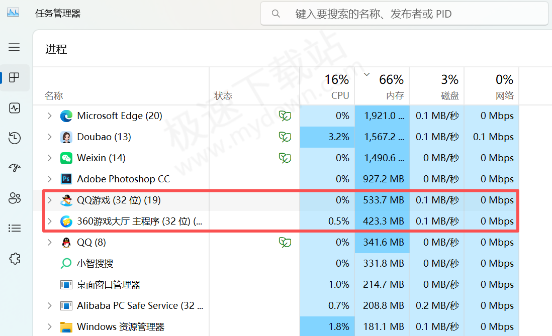 ●360游戏大厅:资源占用控制更优,正常运行时后台内存占用仅400-500MB;游玩小型手游或大部分页游时,后台占用稳定在600MB左右;仅在使用模拟器运行大型手游时,后台占用才可能达到800MB左右。