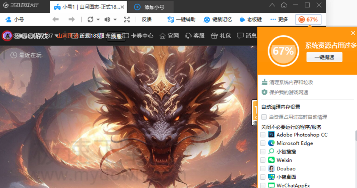 ●劣势:后台占用资源极大,存在广告弹窗,手游和页游无法覆盖一些热门游戏。