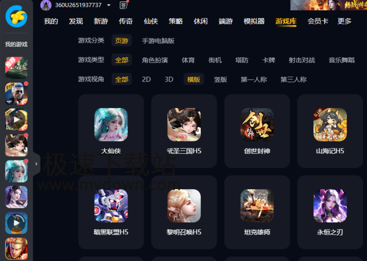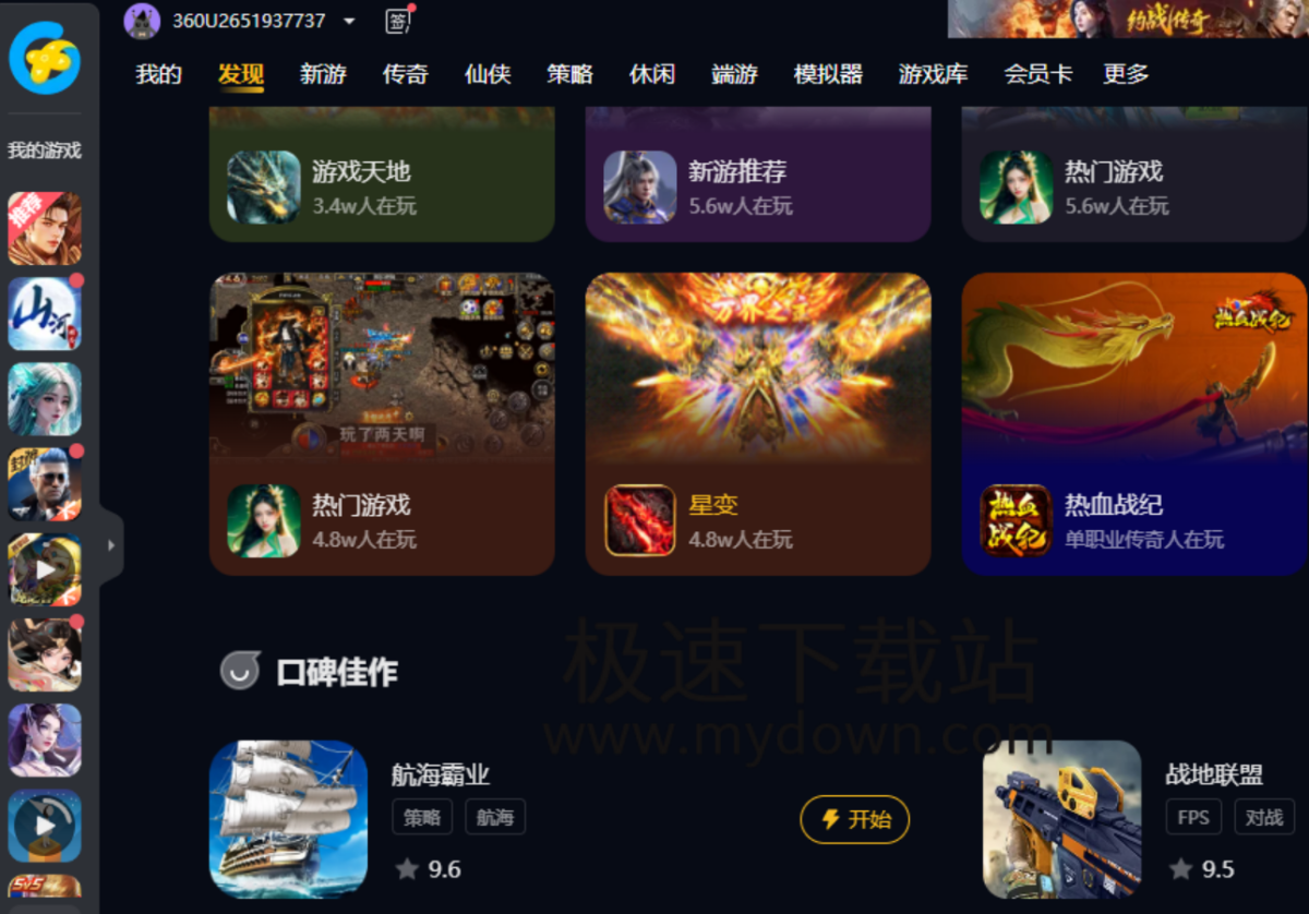 ●360游戏大厅:电脑端游戏比较少,手游和页游很多,自带模拟器,对于竖屏手游适配性更好。