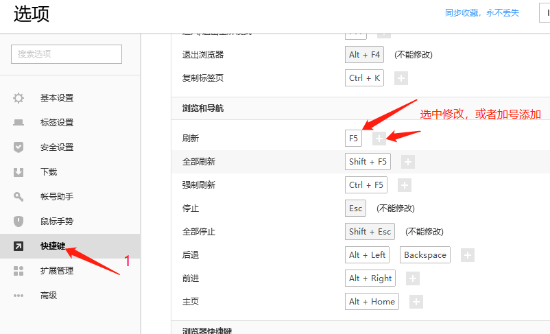 搜狗浏览器并不是想让用户强硬地记住各个快捷键,在开发搜狗浏览器之时,开发者就允许用户自己修改快捷键,以达到“私人订制”的效果。