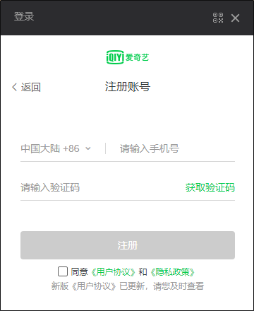 安装好爱奇艺电脑版后,打开进入软件,选择页面右上方的用户头像图标,点击“立即登录”。在弹出的登录界面,点击“注册账号”字样,就能通过手机验证码,注册自己的爱奇艺账号了。
