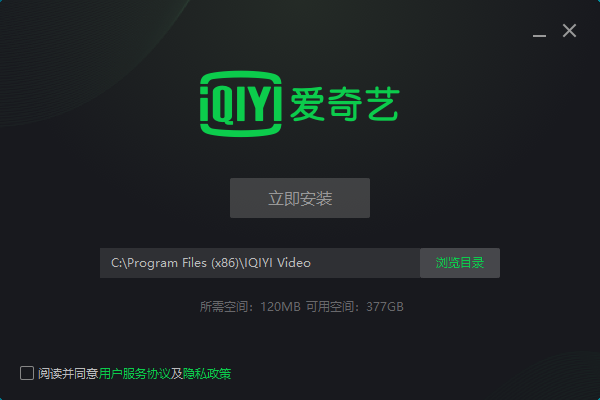 下载好爱奇艺电脑版安装包后,打开运行安装程序,在安装向导界面,点击“浏览目录”更改安装文件夹。更改好安装路径后,勾选上用户协议,再点击“立即安装”。最后,只需等待安装走完就行了。