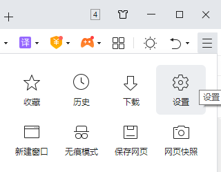 在电脑上打开360安全浏览器之后,点击页面右上角的三根横线图标,在出现的选项中选择“设置”键。