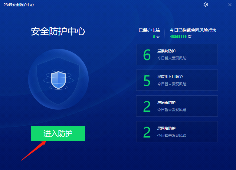 3、接着会跳转到2345安全防护中心界面,点击该界面中的【进入防护】按钮。