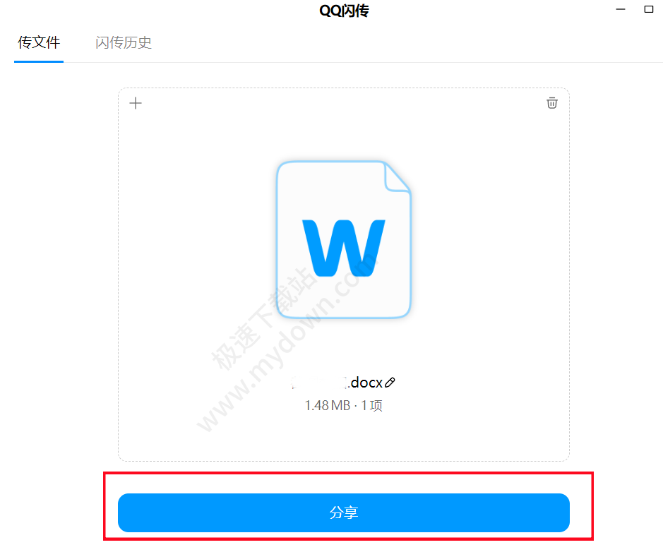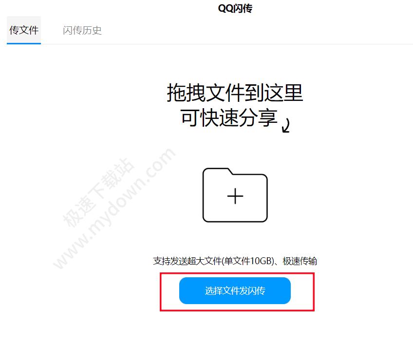 3、进入【QQ闪传】界面,点击【选择文件发闪传】,选择文件后点击【分享】。