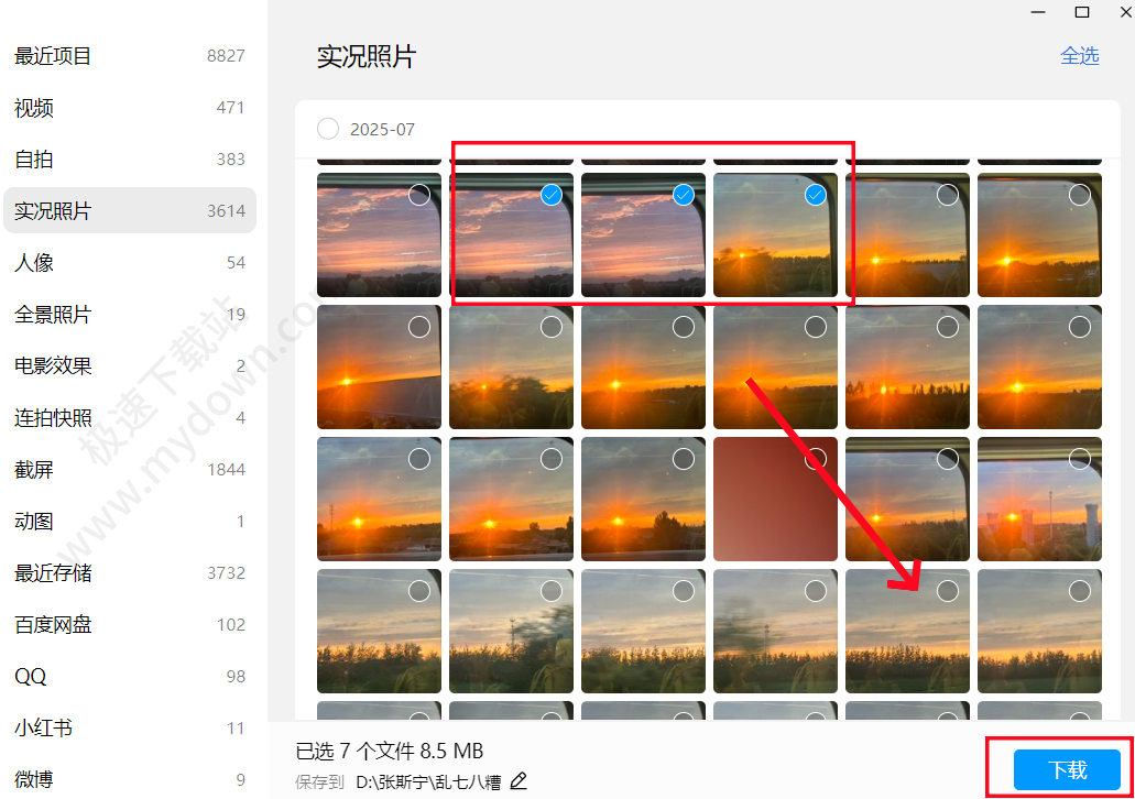 4、授权成功后,用户即可选择照片进行【下载】。