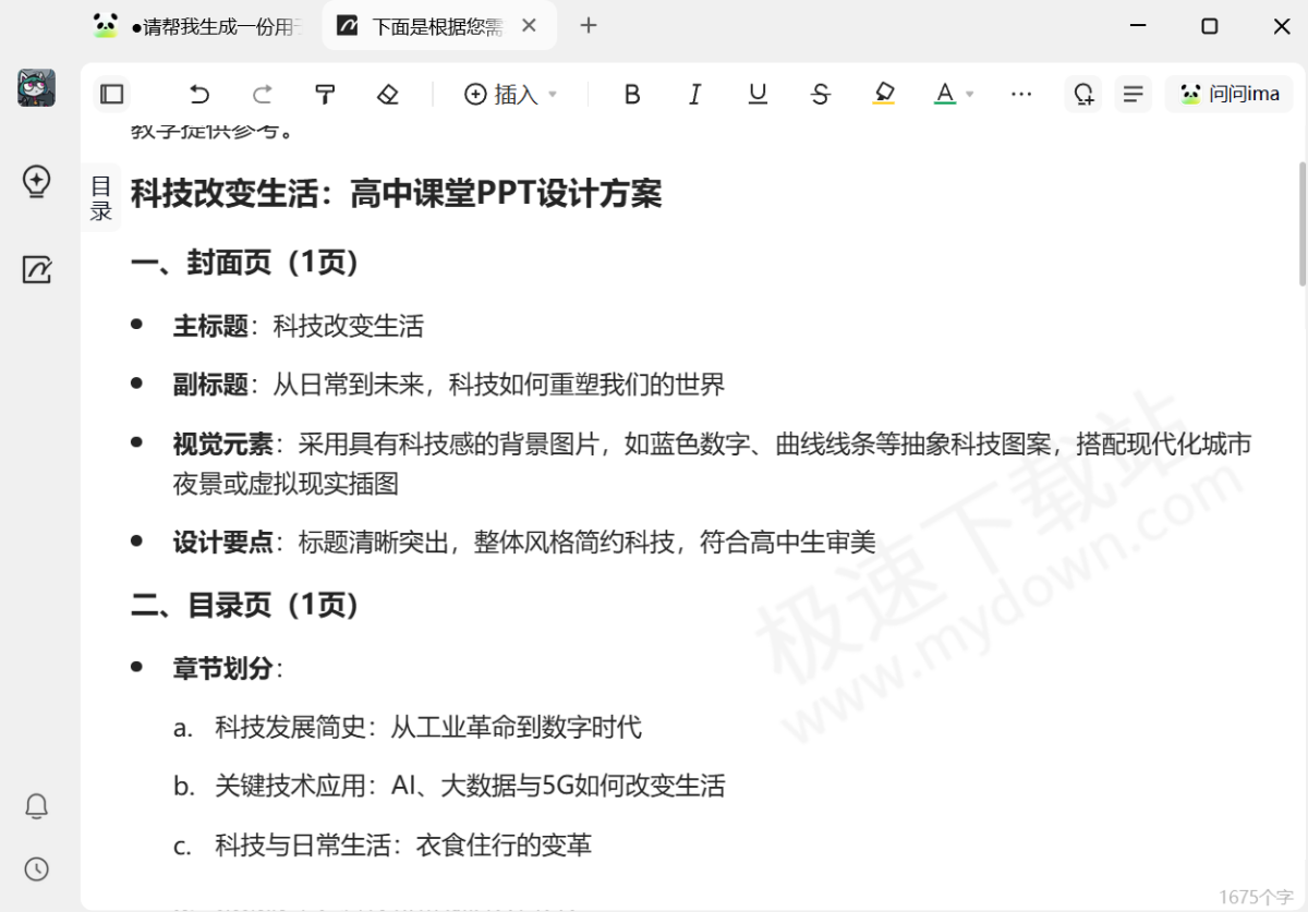 3.腾讯ima会根据提示词生成一份专业的PPT大纲,如图。