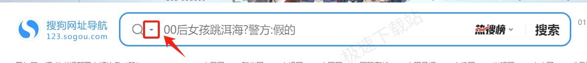 2.在浏览器主页的搜索框中,点击向下箭头,展开搜索引擎选择菜单。