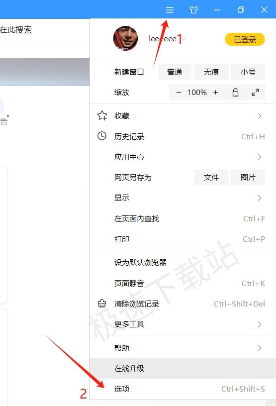 1.在搜狗浏览器页面的右上角找到并点击选项功能。