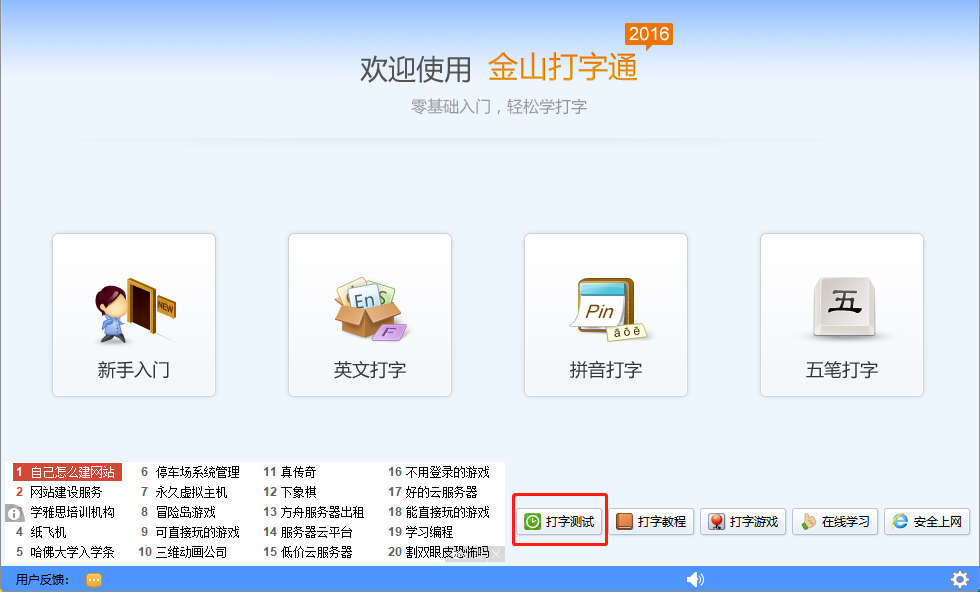 想要进行打字测速的小伙伴,在电脑上打开金山打字通,并登录自己的账号之后,点击页面下方的“打字测速”按钮。