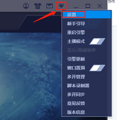 我们如果无法确定位置所在,可以在蓝叠模拟器的右上方点击如下图所示的按钮,然后在出现的列表中选择“设置”。