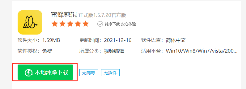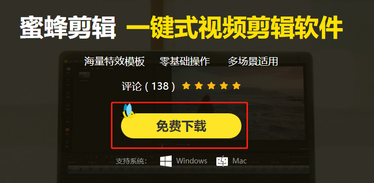 打开电脑中的浏览器搜索蜜蜂剪辑官网,在官网首页点击“免费下载”,就可以下载安装包了。