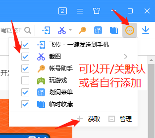 其中,我们不但可以对默认的插件/小功能进行开/关,还可以跳转至扩展中心页面自行选择更契合自己的插件。