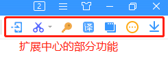 接下来给大家介绍其位置:我们打开搜狗浏览器,在浏览器UI的右上方,就可以看到扩展中心的部分功能,在默认情况下,扩展中心的功能为截屏、账号助手、划词翻译等,由此可见,小功能还是蛮丰富的。接下来,则教大家如何对扩展中心进行管理。