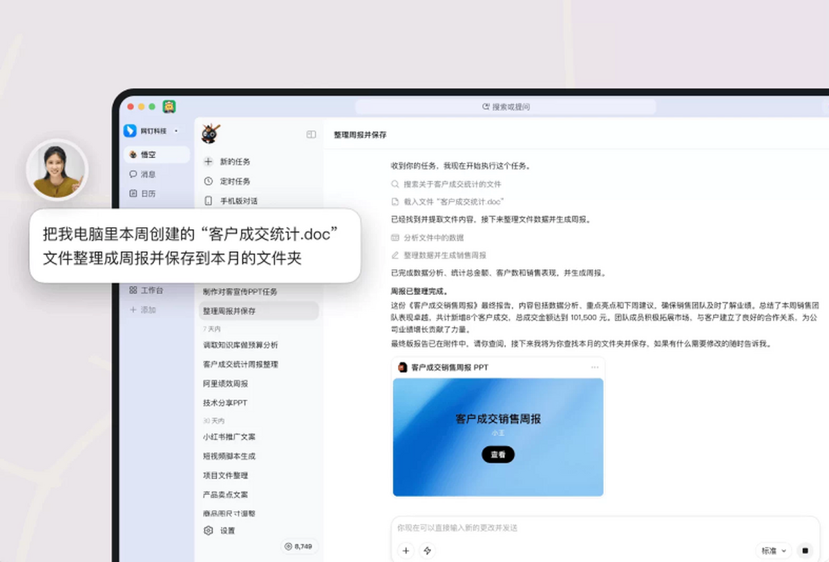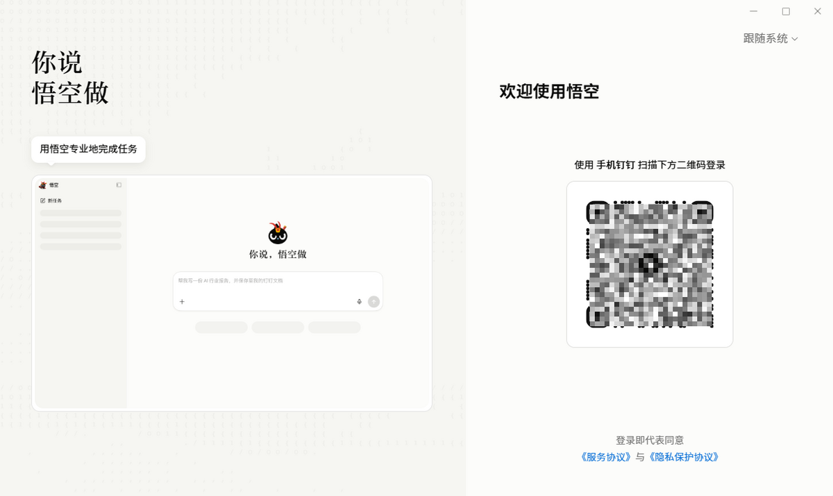 悟空是企业办公智能体,安装在电脑上,并和钉钉企业数据打通,专业地完成各类工作任务,想做什么,告诉悟空。