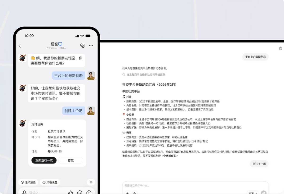 传统 AI 助手只能回答问题、生成文本。悟空更进一步—它能直接操作你的电脑完成任务。不是告诉你怎么做,而是直接帮你做。