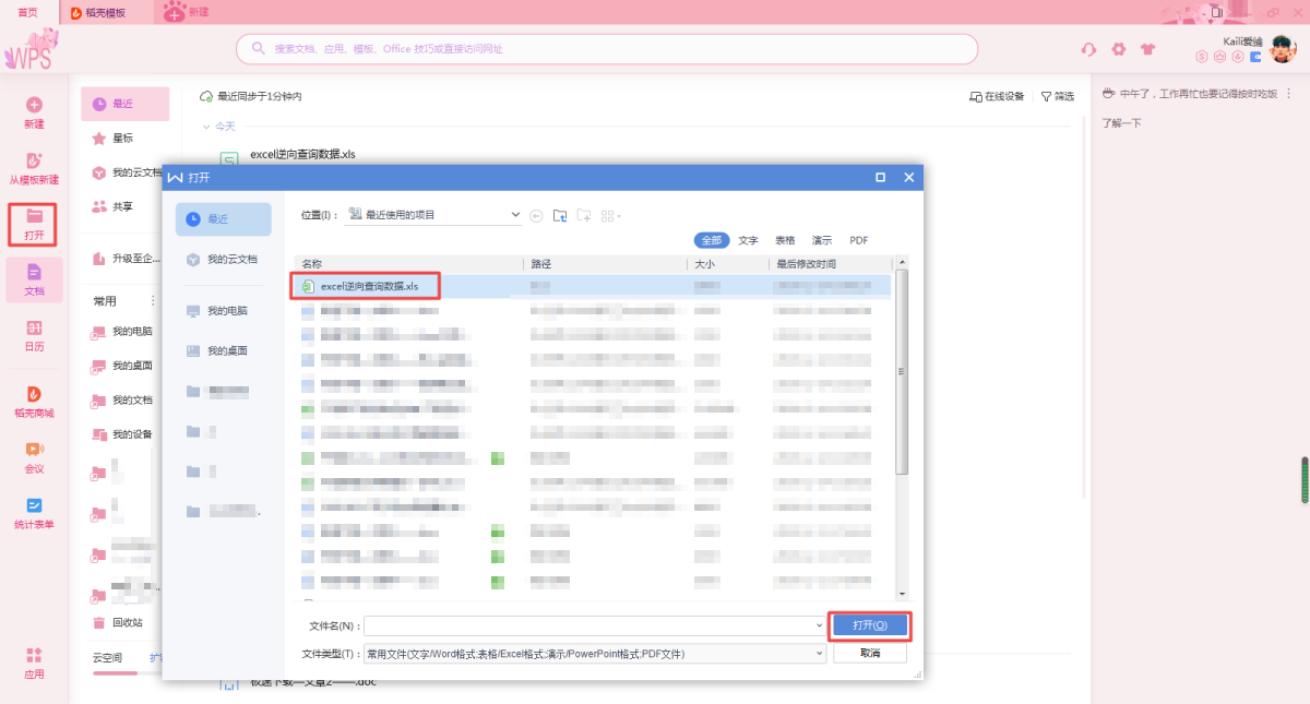 第一步,在电脑上打开WPS程序,然后再将所需要的excel表格也同时打开。