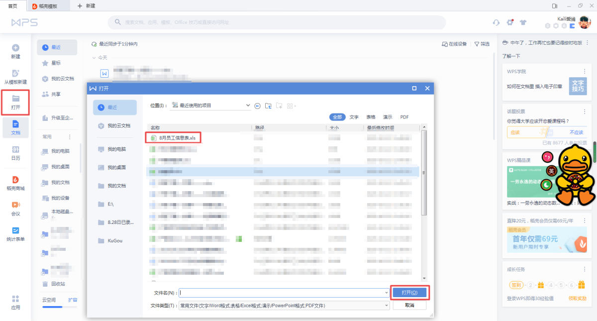 第一步,在电脑上找到WPS程序,然后双击打开,接着将需要进行处理的Excel表格文档打开。