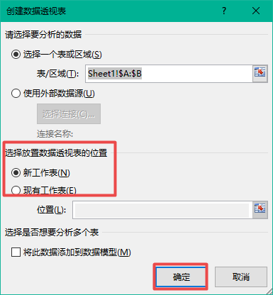 第三步,接着软件会弹出创建数据透视表的窗口,此时我们根据自己的实际需求来对【选择放置数据透视表的位置】进行选项,然后点击窗口右下角的【确定】按钮。