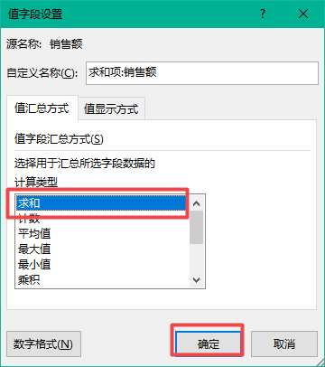 第六步,接着软件就会弹出值字段设置的窗口了,此时我们在【值汇总方式】一栏中,选择【求和】方式,然后点击【确定】按钮。