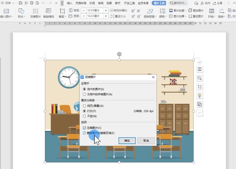在选项处可以设置删除图片的裁剪区域,这样可以大大减少文档体积。