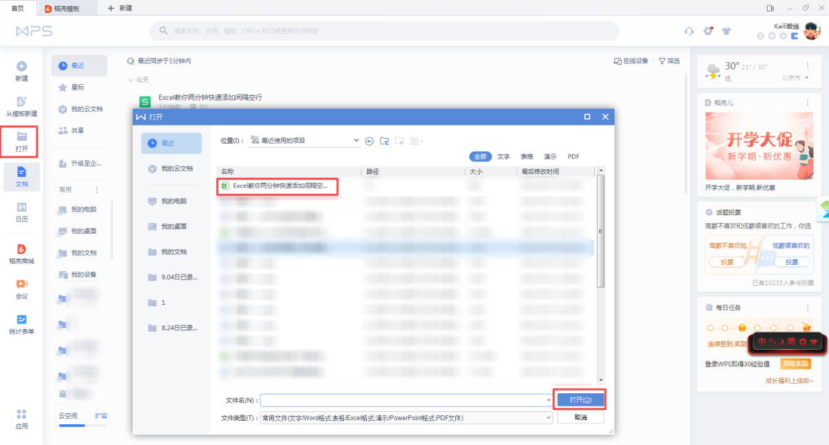 第一步,在电脑上找到WPS程序,然后双击打开,程序打开以后,接着将需要进行处理的表格也进行打开。